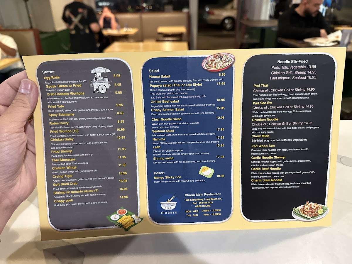 For reservations or inquiries, call Charm Siam Restaurant at +1 562-628-2424. Your next favorite dining experience awaits!